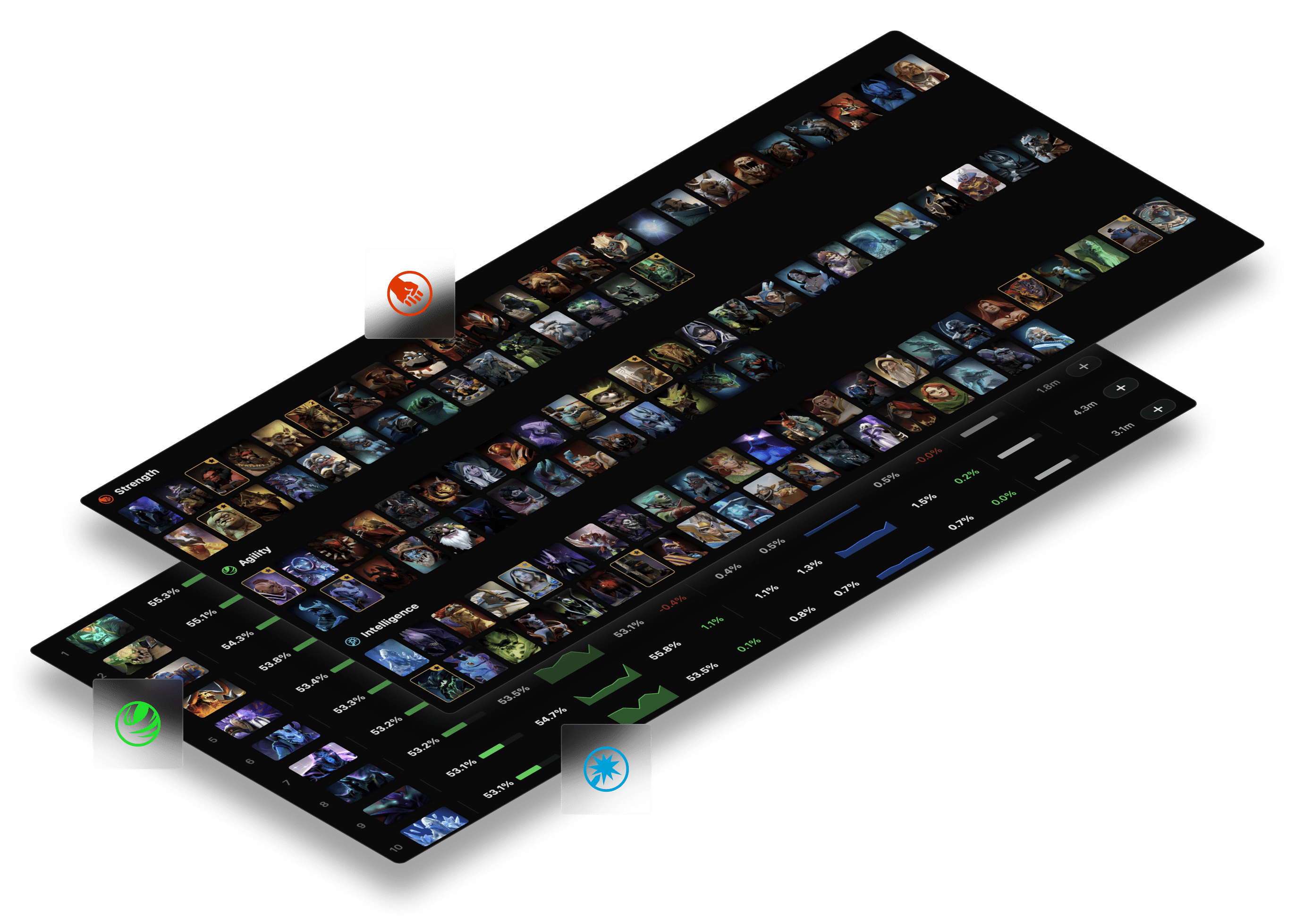 • Страница Meta Trends, которая рассматривает выступления героев от часов до месяцев
